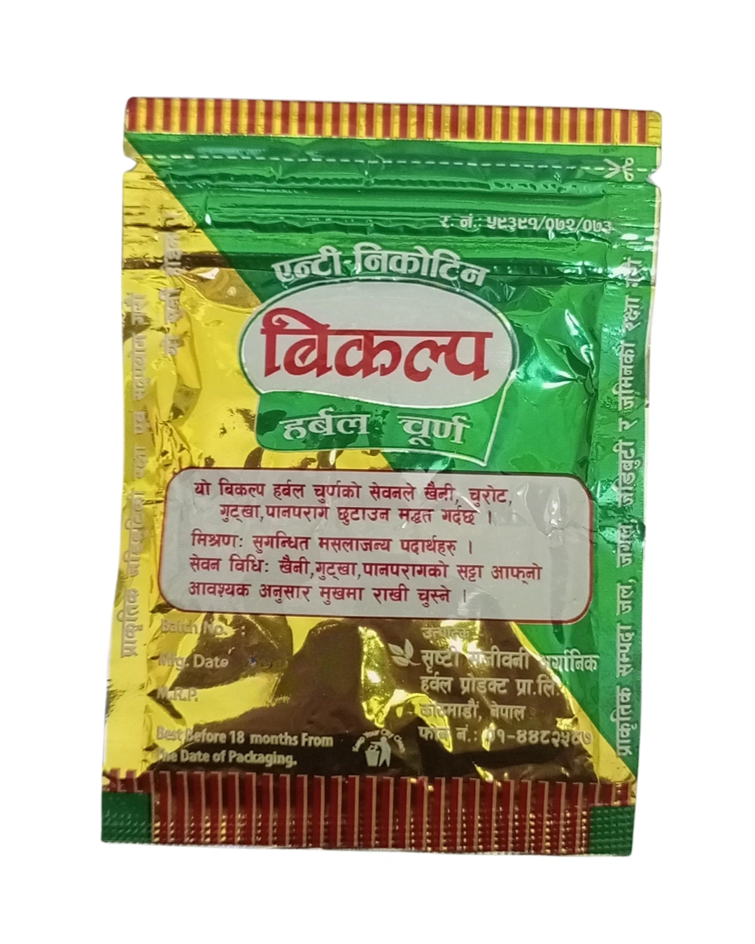 धुम्रपान र सुर्तीजन्य पदार्थको लतलाई जरैदेखि हटाउन Nirogya Nepal ले ल्याएको छ—विकल्प एन्टि-निकोटीन हर्बल पाउडर। "विकल्प" को अर्थ नै अर्को राम्रो बाटो हो; यसले चुरोट, खैनी वा गुट्खाको तलतललाई मेटाई बिस्तारै लत छोड्न मद्दत गर्दछ। यो शुद्ध आयुर्वेदिक जडीबुटीहरूबाट बनेको मिश्रण हो जसले निकोटिनको तिर्खालाई शान्त पार्छ र शरीरमा जमेको हानिकारक तत्वहरूलाई सफा गर्छ। स्वस्थ र लतमुक्त जीवन सुरु गर्न चाहनेहरूका लागि यो एक प्रभावकारी साथी हो।