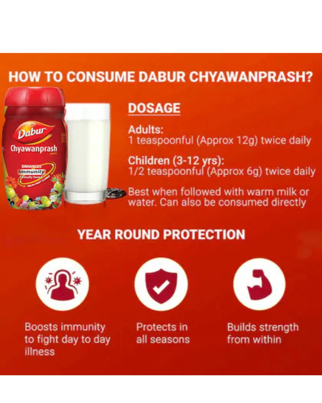 Strengthen your body’s natural defenses with Dabur Chyawanprash Awaleha, the world’s number one selling Chyawanprash, now available at Nirogya Nepal. This 500g jar is a time-tested Ayurvedic health supplement formulated with over 40 potent herbs, including Amla, Giloy, Ashwagandha, and Shatavari. Based on a 2,500-year-old original recipe, Dabur Chyawanprash is designed to boost immunity, provide daily energy, and protect your family from seasonal infections like coughs, colds, and flu.