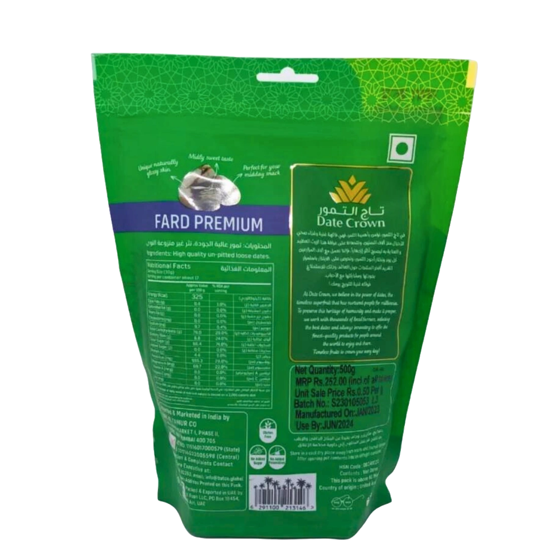 Indulge in the natural sweetness and rich heritage of Arabia with Date Crown Premium Fard Khajur, now available at Nirogya Nepal. These premium dates are celebrated for their deep dark color, unique small round shape, and a tender, semi-dried texture that melts in your mouth. Whether you are looking for a healthy sugar substitute, a quick energy boost during a busy day, or a nutritious snack for your family, these Fard dates offer a perfect balance of flavor and wellness. Packed with essential minerals and fiber, they are a wholesome addition to your daily diet, brought to you with the promise of purity and quality.