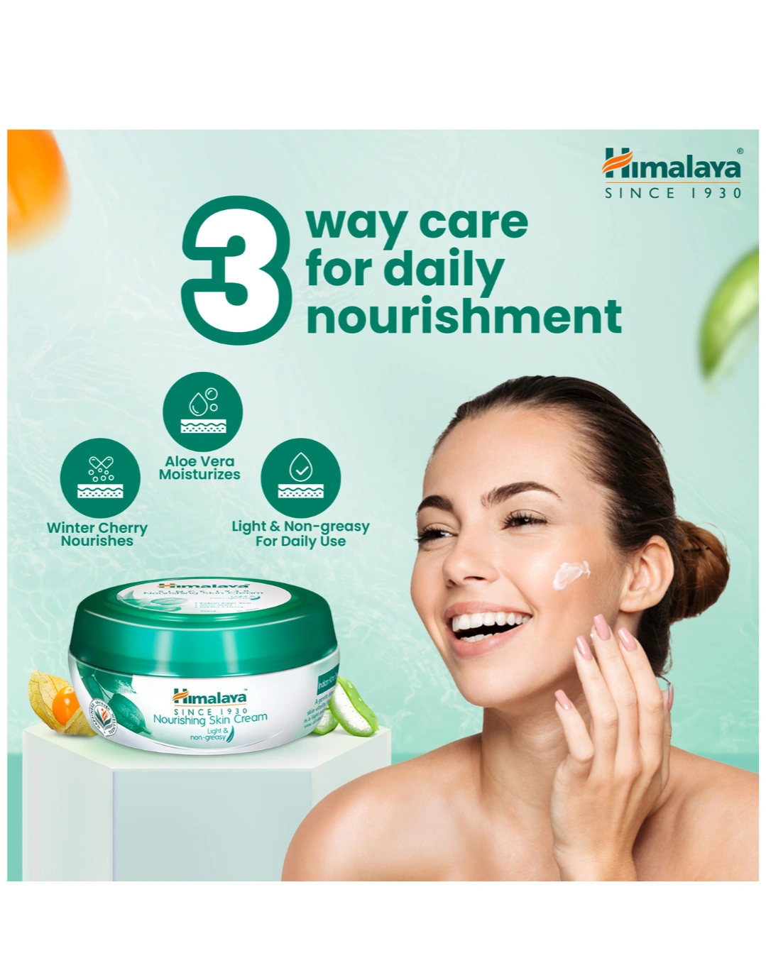 Experience all-day moisture and protection with Himalaya Nourishing Skin Cream, now available at Nirogya Nepal. This daily-use cream is specifically formulated to provide deep hydration without leaving a heavy or oily residue. Enriched with a herbal blend of Aloe Vera, Winter Cherry (Ashwagandha), and Indian Kino Tree, it nourishes your skin from within and protects it against harsh weather and environmental pollutants. Perfect for all skin types, its light and non-greasy texture absorbs quickly, making it an ideal base for makeup or a refreshing part of your morning and evening skincare routine.