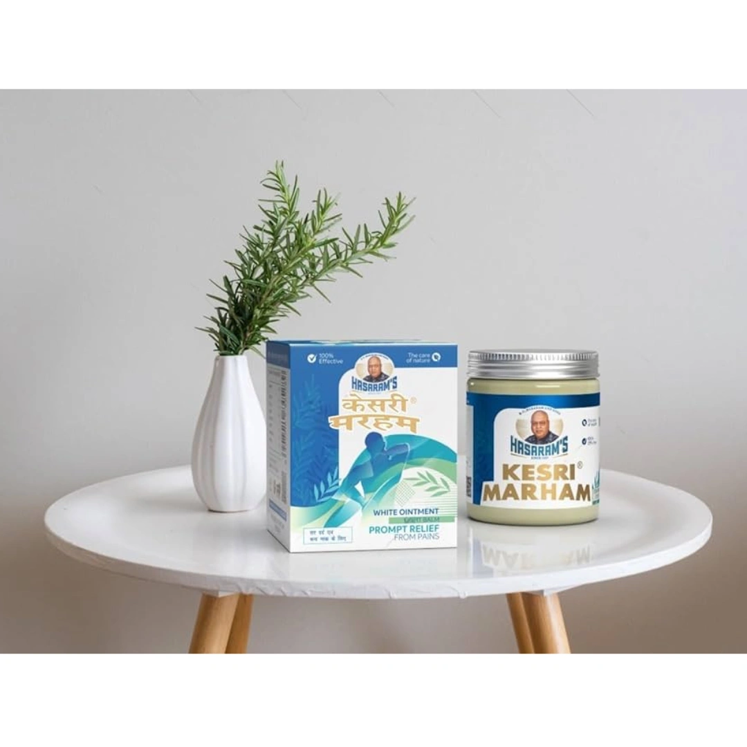 Kesri Marham White Ointment Light Balm 40g is a soothing herbal ointment formulated for quick relief from joint pain, muscle aches, sprains, and minor inflammations. Enriched with time-tested Ayurvedic ingredients, it provides a cooling effect and promotes faster recovery by improving blood circulation in the affected area. Ideal for external application, this balm is suitable for daily use and offers effective pain management without any side effects.