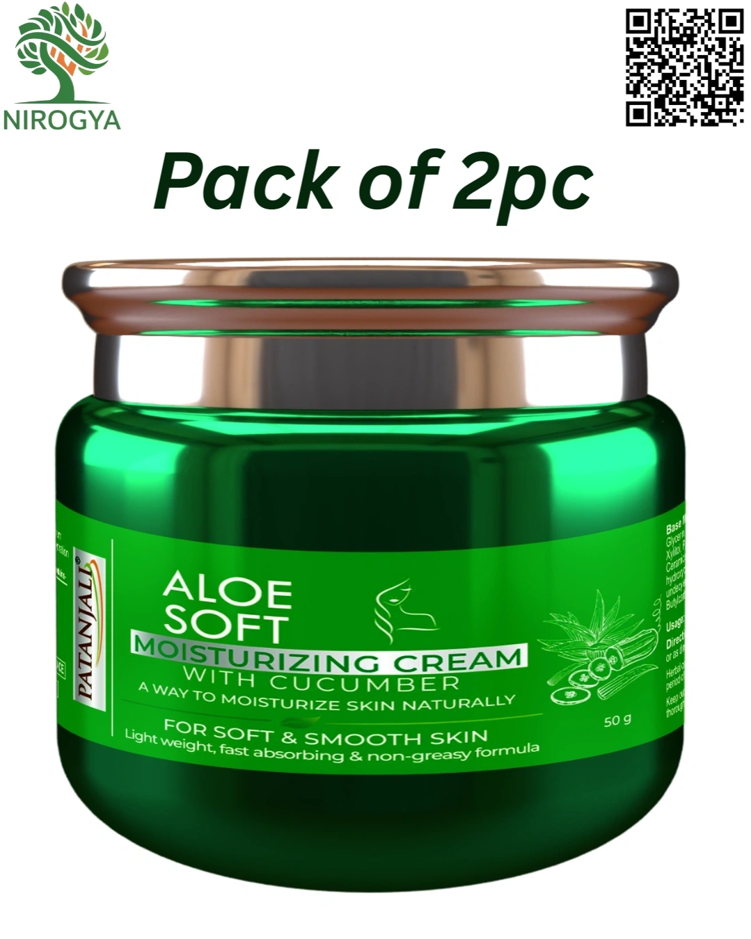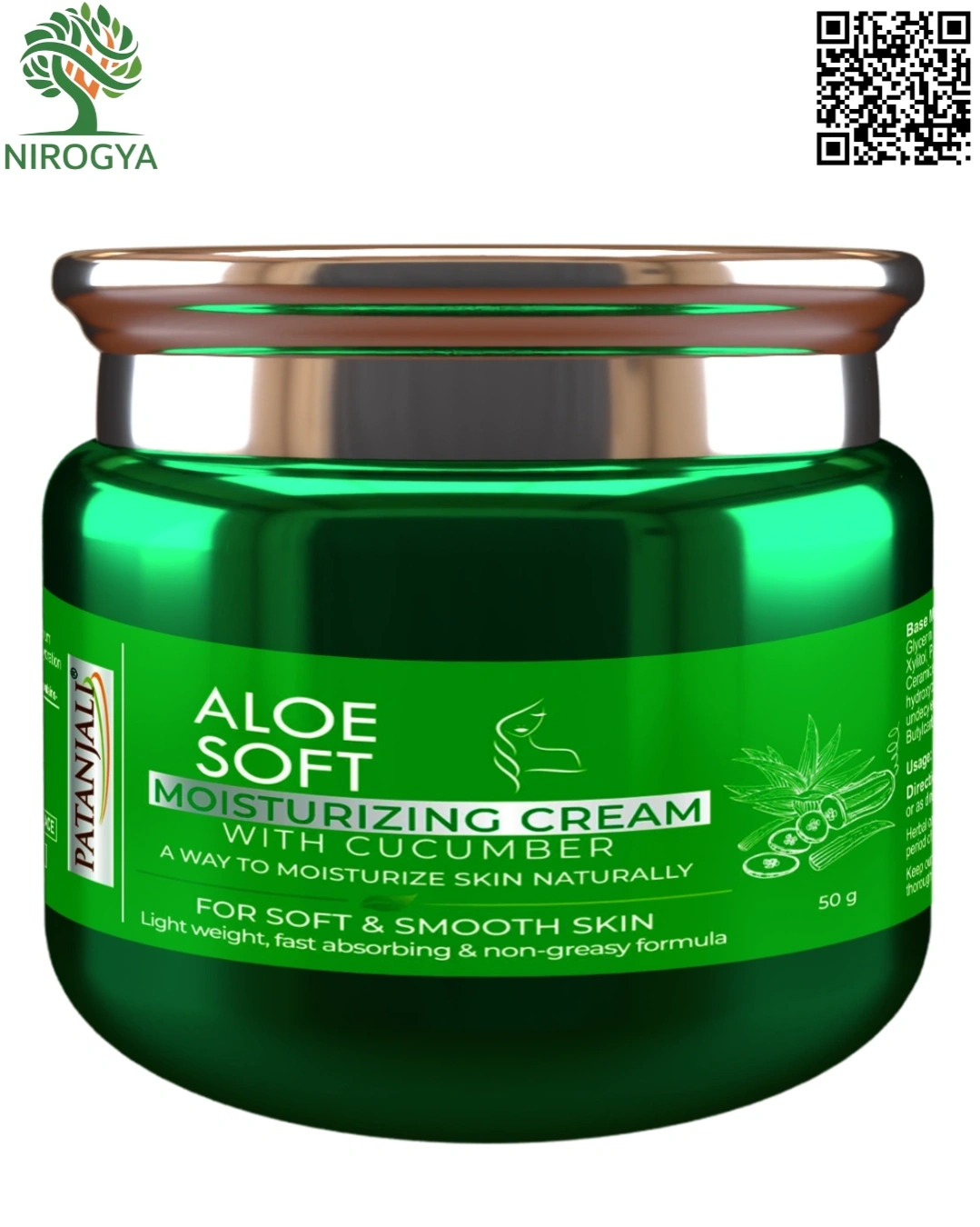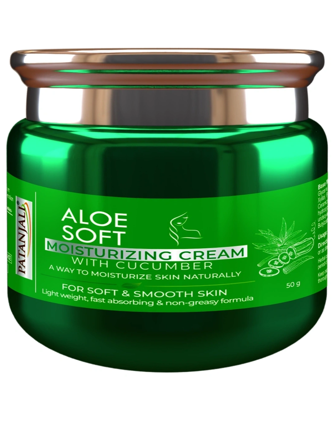 Give your skin the ultimate drink of water with Patanjali Aloe Soft Moisturizing Cream with Cucumber. This 50g jar of botanical goodness is specifically formulated to combat dryness and dullness without the heavy, greasy feeling of traditional creams. By combining the deep-hydrating power of pure Aloe Vera with the instant cooling effect of Cucumber, this cream acts as a soothing shield for your face and body. It doesn't just sit on the surface; it penetrates deep into the skin layers to lock in moisture, repair sun damage, and refine your skin texture. Perfect for all skin types and all seasons, it leaves your complexion looking dewy, feeling velvety soft, and smelling incredibly fresh.