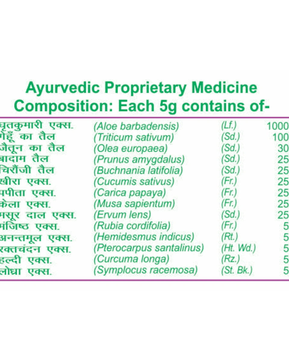 प्राकृतिक चमक: चन्दन र घिउकुमारीको मिश्रणले छालालाई शितलता दिनुका साथै प्राकृतिक निखार ल्याउँछ।