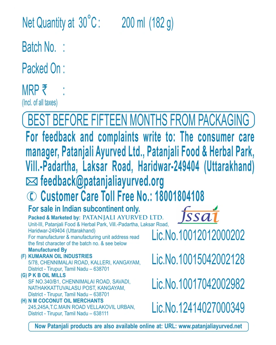 Experience the purity of nature with Patanjali Coconut Oil, now available at Nirogya Nepal. Sourced from the finest coconuts, this 100% pure and edible-grade oil is processed to maintain its natural nutrients and refreshing aroma. A versatile essential for every Nepali household, it works wonders as a nourishing hair oil to promote strength and shine, a gentle skin moisturizer to combat dryness, and even a healthy cooking medium. The convenient 200ml round jar is designed for easy access, ensuring you get every drop of this high-quality, preservative-free oil for your daily self-care and wellness routine.