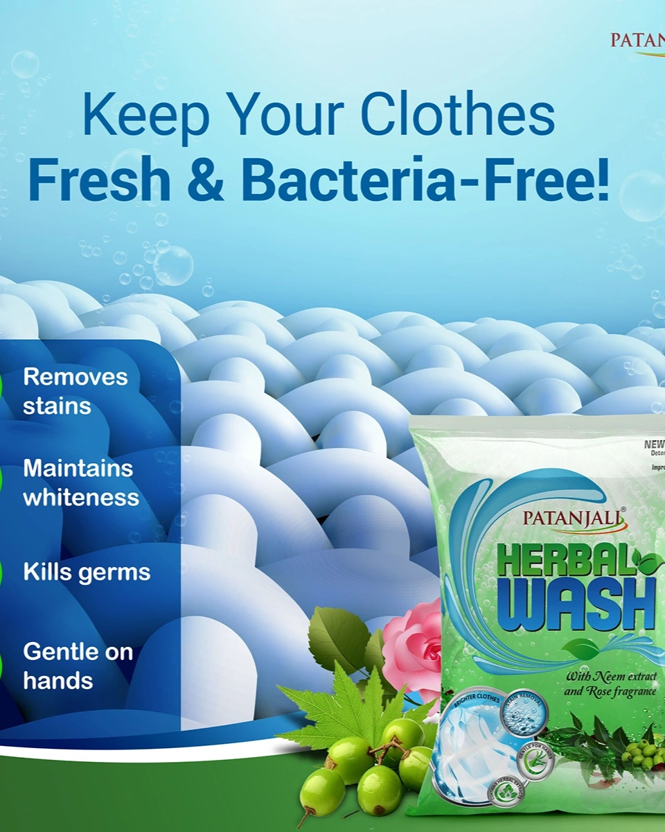 Experience the perfect blend of cleanliness and herbal care with Patanjali Herbal Wash Detergent Powder, now available at Nirogya Nepal. Infused with the natural cleaning power of Lemon, Neem, and Soda, this detergent is designed to remove tough stains, grime, and grease from your clothes while remaining gentle on the fabric. Unlike harsh chemical detergents that can damage fibers and irritate the skin, Patanjali’s herbal formulation ensures that your clothes stay bright, fresh, and soft. It is an eco-friendly and skin-safe choice for maintaining the hygiene of your daily wear, linens, and delicate garments.
