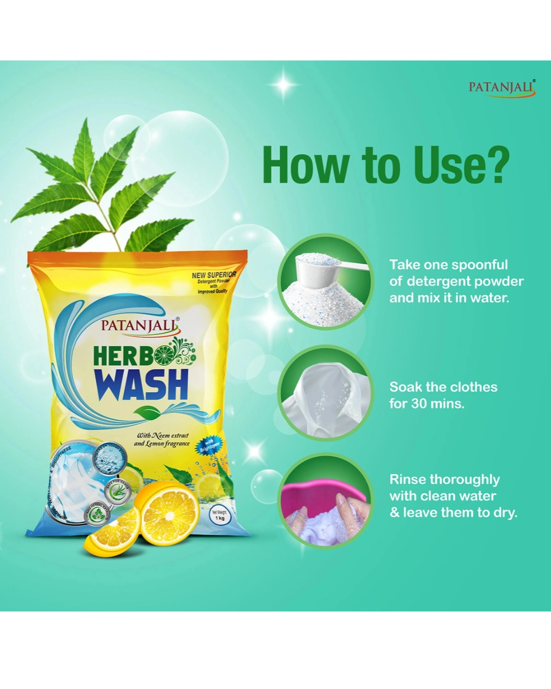 Herbal Disinfection: Infused with Neem extracts that act as a natural antibacterial agent, ensuring your clothes are hygienically clean.