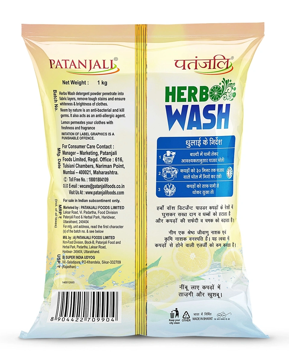 Bring the power of nature into your laundry room with Patanjali Herbo Wash Detergent Powder, now available at Nirogya Nepal. This unique herbal formulation is designed to provide a superior wash that is tough on dirt but gentle on your clothes and skin. Unlike conventional detergents that rely solely on harsh synthetic chemicals, Herbo Wash utilizes the cleaning properties of Lemon, Neem, and Soda. It effectively dissolves grease, removes stubborn stains, and disinfects your clothes, leaving them bright, soft, and smelling naturally fresh.