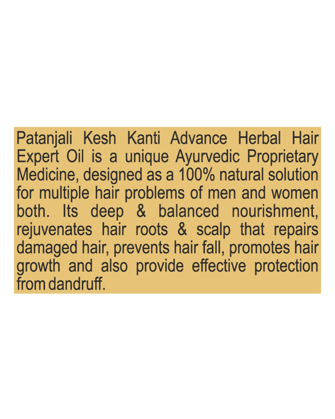 चिल्लो नहुने (Non-sticky): धेरै जडीबुटी भए तापनि यो तेल धेरै टाँसिने खालको छैन, जसले गर्दा लगाउन र पखाल्न सजिलो हुन्छ।
