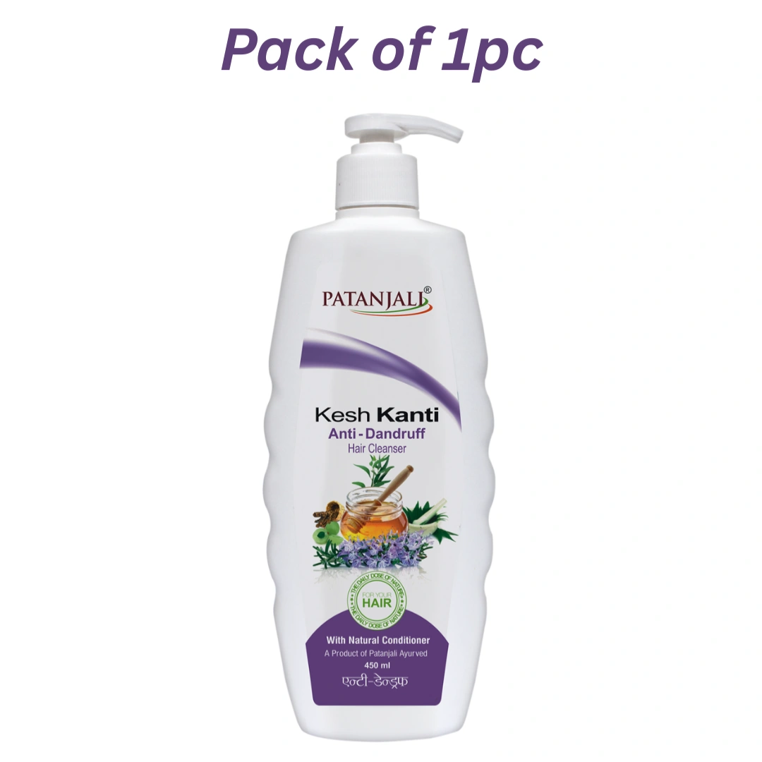 Eliminate dandruff and soothe an itchy scalp with Patanjali Kesh Kanti Anti-Dandruff Hair Cleanser, now available at Nirogya Nepal. This powerful Ayurvedic shampoo is formulated with a potent blend of herbal extracts and essential oils specifically chosen for their antifungal and antibacterial properties. Enriched with Rosemary Oil, Tea Tree Oil, Neem, and Nilgiri (Eucalyptus), it targets the root cause of dandruff without stripping away the hair's natural moisture. The generous 450ml family pack ensures long-lasting protection, leaving your hair clean, flake-free, and naturally healthy.