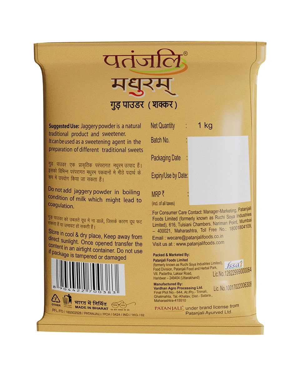 Embrace the traditional sweetness of India and Nepal with Patanjali Madhuram Jaggery Powder, now available at Nirogya Nepal. This premium quality Shakkar is a natural, unrefined sweetener made from concentrated sugarcane juice. Unlike white sugar, it is processed without harsh chemicals, retaining essential nutrients like iron and magnesium. Known for its rich, caramel-like flavor, it acts as a healthy alternative for sweetening your daily beverages, breakfast cereals, and traditional desserts. Its fine powder form ensures it dissolves quickly, making it a convenient and wholesome choice for every health-conscious kitchen.