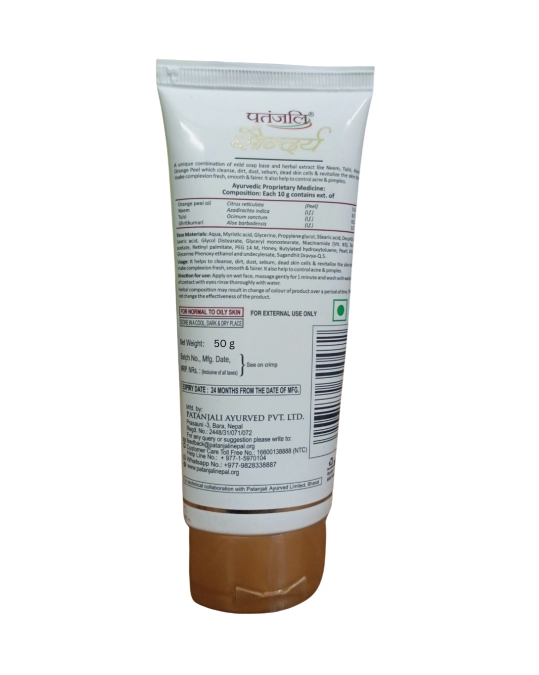 तपाईंको अनुहारको चमकलाई यात्रामा पनि जोगाइराख्न Nirogya Nepal मा उपलब्ध छ—पतंजलि सौन्दर्य फेस वास (Pearl + Vit.B3)। ५० ग्रामको यो सानो प्याक बोक्न सजिलो र प्रयोगमा प्रभावकारी छ। यसमा भएको मोतीको सार (Pearl) र भिटामिन B3 ले छालालाई गहिरो गरी सफा गर्छ र अनुहारमा एउटा बेग्लै चमक (Radiance) प्रदान गर्दछ।
