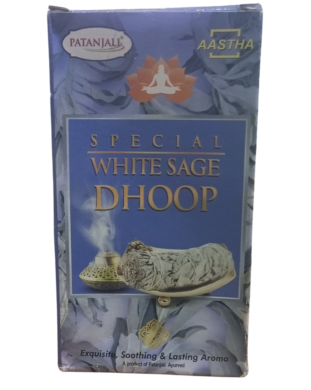 Experience the ultimate spiritual detox with Patanjali Special White Sage Dhoop. For centuries, White Sage has been revered as a master purifier, used to cleanse environments of stagnant or negative energy. This "Special Edition" dhoop captures the raw, earthy, and herbal essence of authentic White Sage, providing you with a convenient way to "smudge" your home without the mess of loose leaves. Whether you are moving into a new home, starting a deep meditation session, or simply want to clear the mental fog after a long day, these bamboo-free sticks release a holy smoke that balances your Chakras and invites positive vibrations into your sanctuary.
