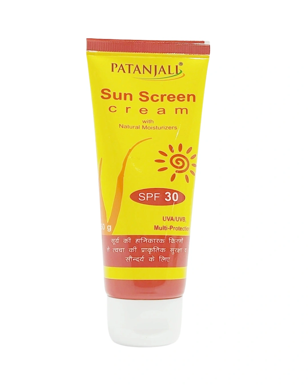 घामको हानिकारक किरणबाट छालालाई जोगाउन र ओसिलोपना कायम राख्न Nirogya Nepal मा उपलब्ध छ—पतंजलि सन स्क्रिन क्रीम SPF-30। ५० ग्रामको यो प्याकमा घिउकुमारी (Aloe Vera), गहुँको तेल (Wheat Germ Oil) र नरिवलको तेल जस्ता प्राकृतिक तत्वहरूको मिश्रण छ। यसले छालालाई डढ्नबाट बचाउनुका साथै छालाको प्राकृतिक कोमलता कायम राख्न मद्दत गर्दछ।