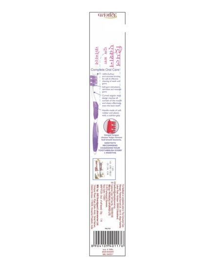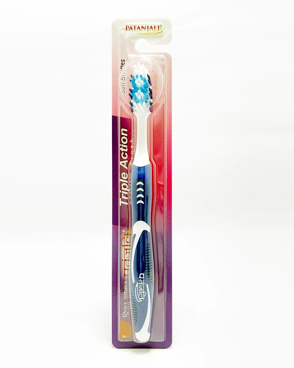 Achieve a superior clean while protecting your gums with the Patanjali Triple Action Toothbrush, now available at Nirogya Nepal. Designed with an advanced cleaning mechanism, this toothbrush features Soft Bristles that are gentle on tooth enamel and sensitive gums, yet highly effective at removing plaque and food debris. The "Triple Action" design ensures that every corner of your mouth receives professional-grade care during your daily brushing routine.