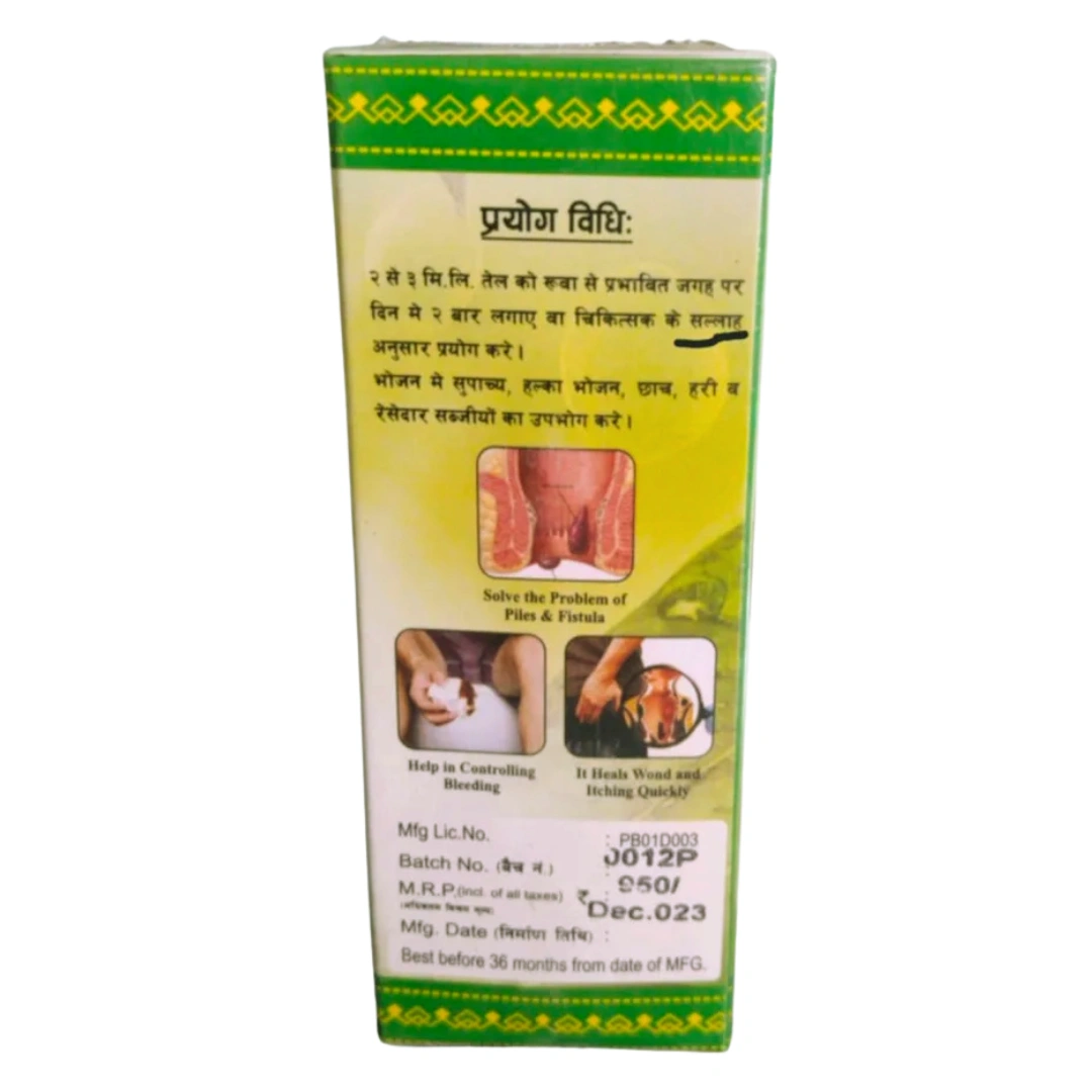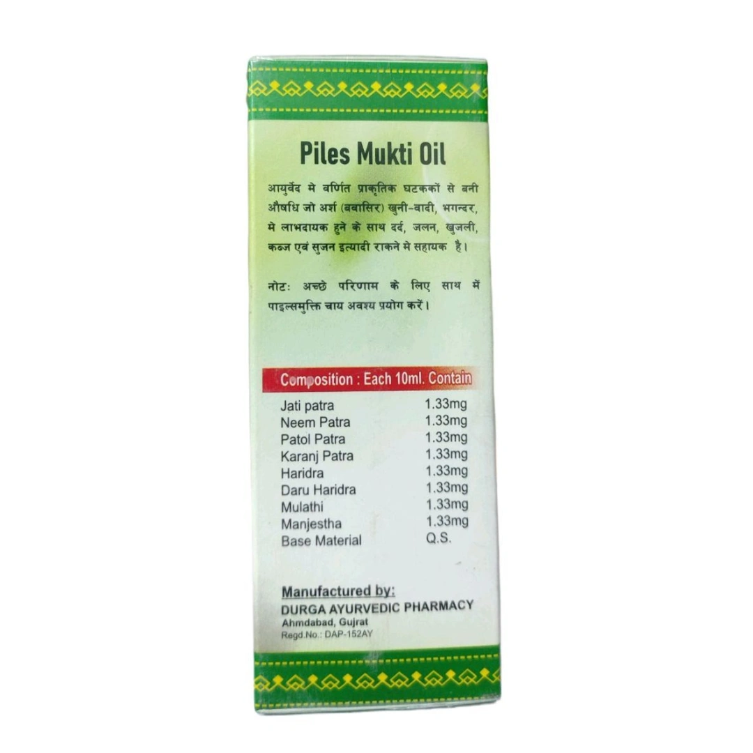 Piles Mukti Oil 100 ml a soothing herbal oil formulated specifically to provide fast and effective relief from piles (hemorrhoids) and anal fissures. Crafted from time-tested Ayurvedic ingredients, it helps ease discomfort, reduce inflammation, and promote healing. Its gentle external application makes it a preferred choice for those seeking natural, side‑effect‑free relief.