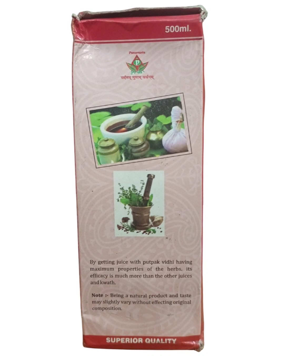 परम्परागत पुटपाक विधि: यो सामान्य जुस भन्दा फरक छ; पुटपाक विधिले जडिबुटीको भित्री तत्वलाई नष्ट हुन दिँदैन, जसले गर्दा यो शरीरमा छिटो र बढी प्रभावकारी हुन्छ।