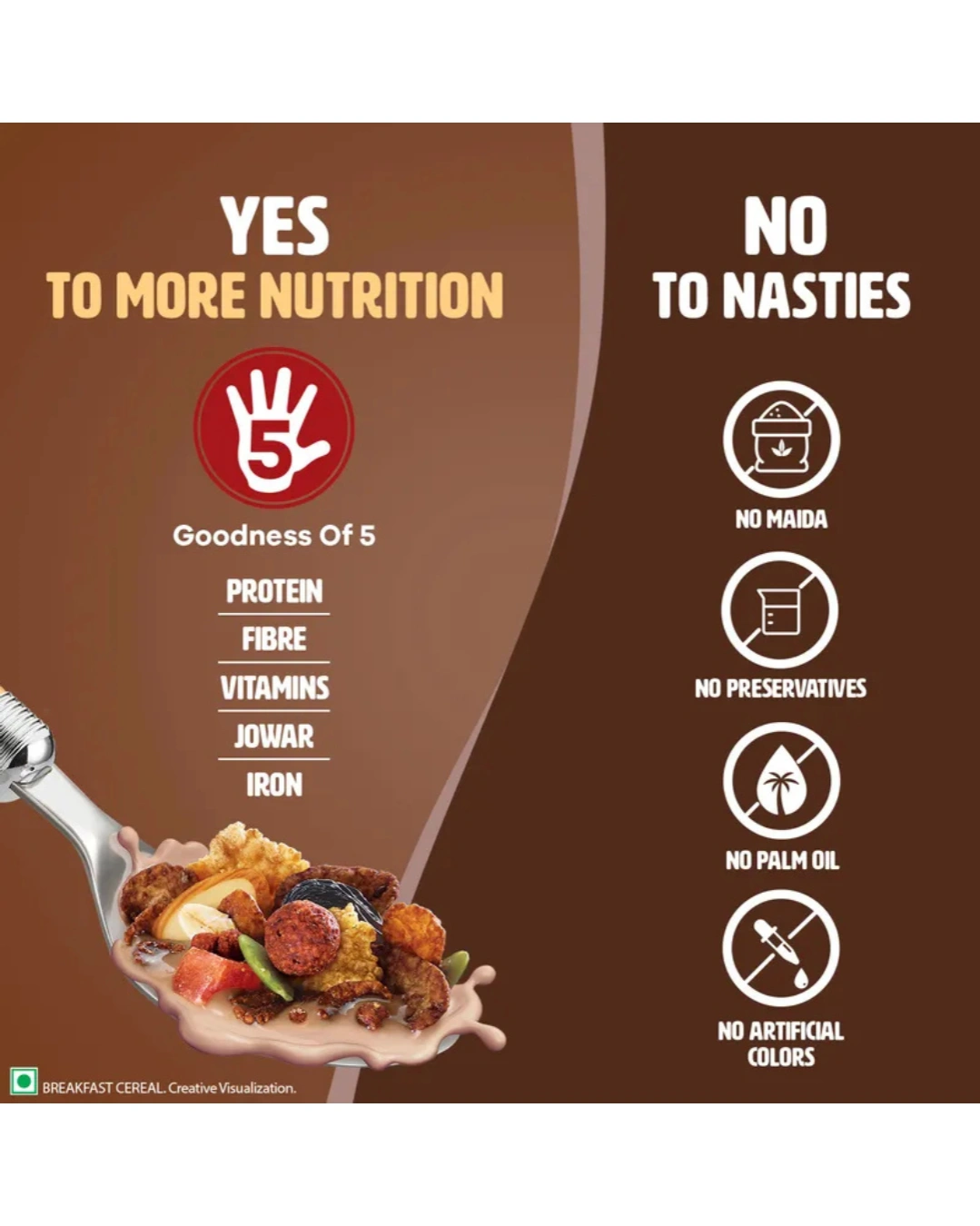 Power of 5 Grains: A nutritious blend of Oats, Wheat, Corn, Rice, and Jowar for sustained energy.