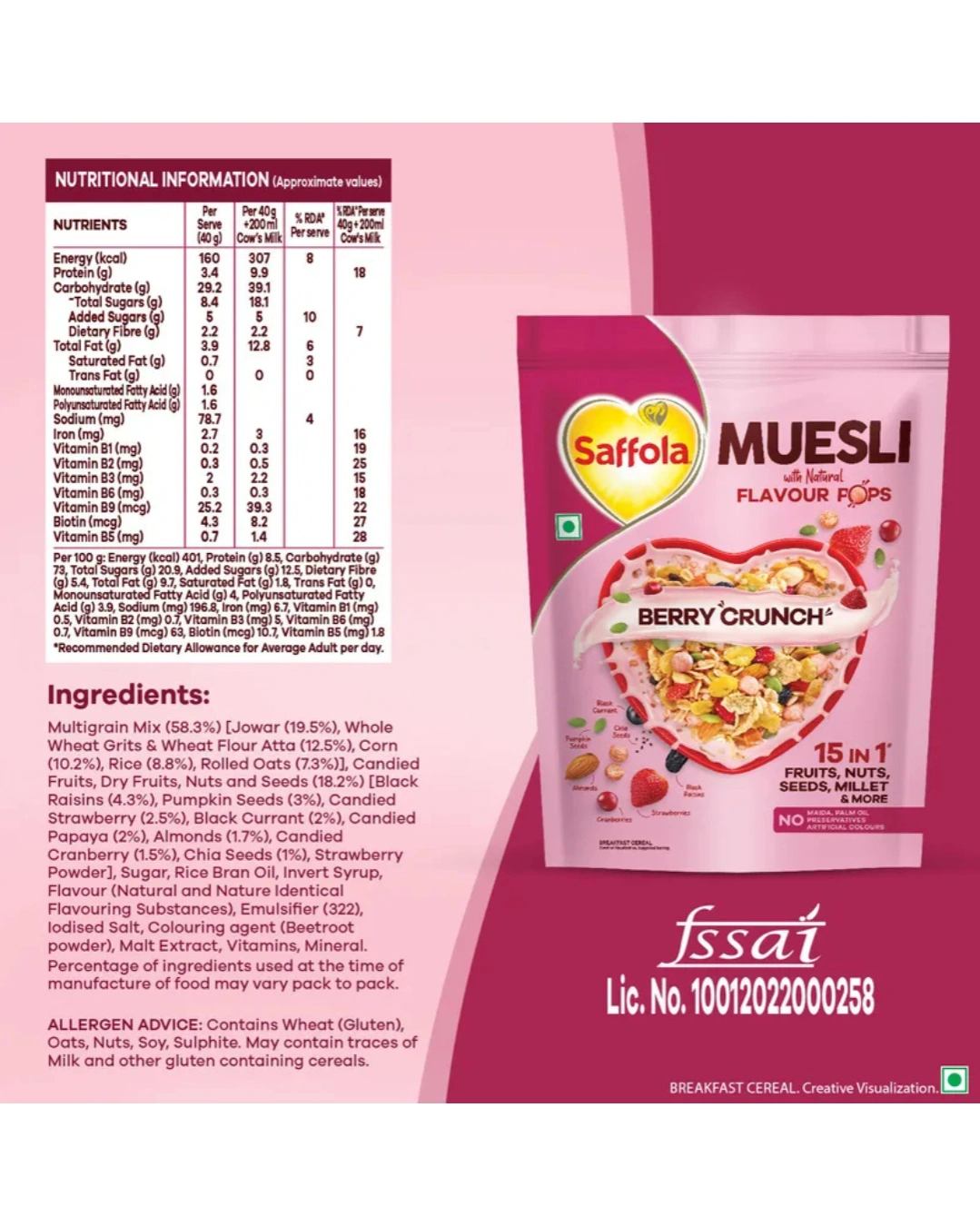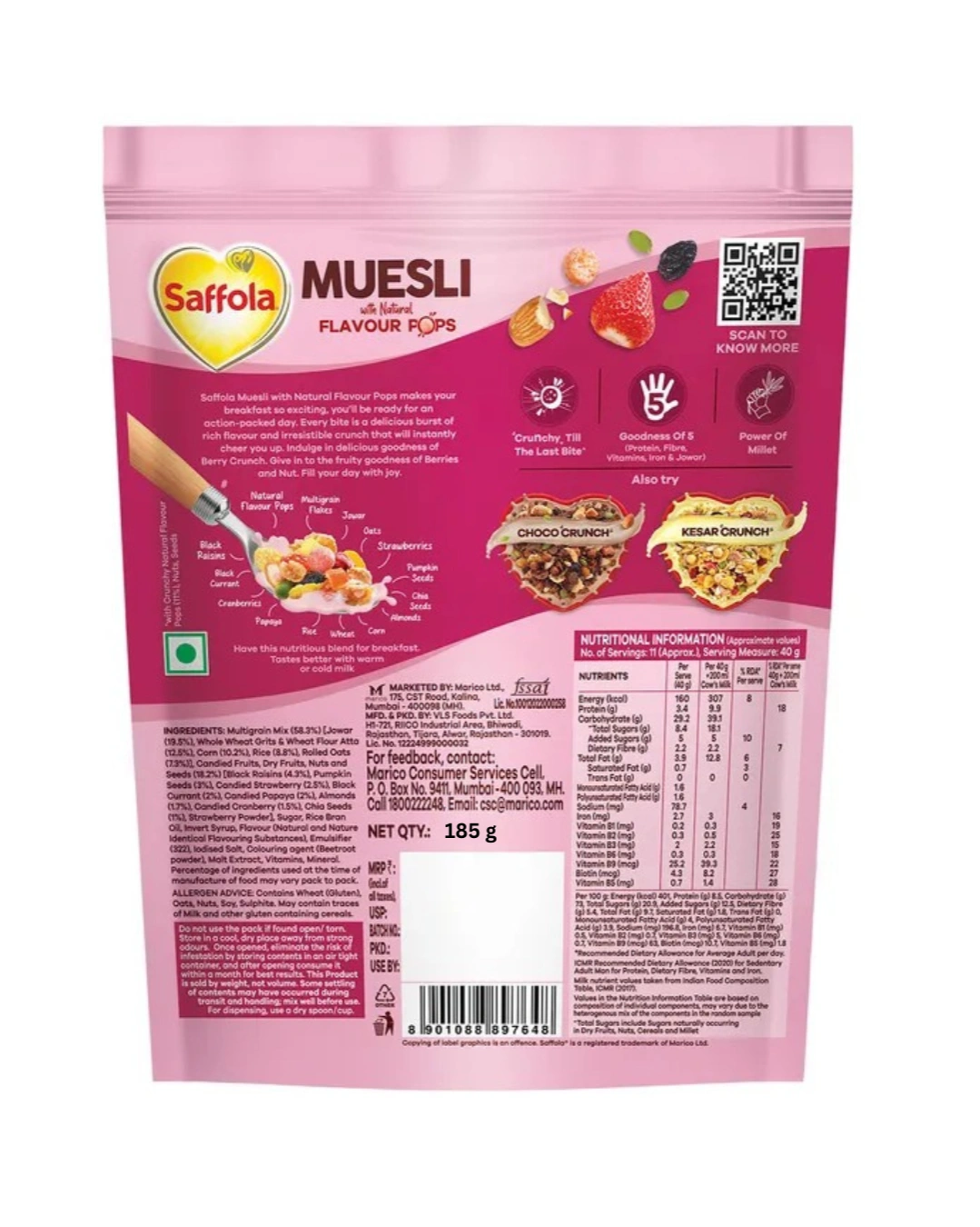 Perfect Portion Size: The 185g pack is convenient for quick breakfasts, office snacks, or as a trial pack to experience the berry goodness.