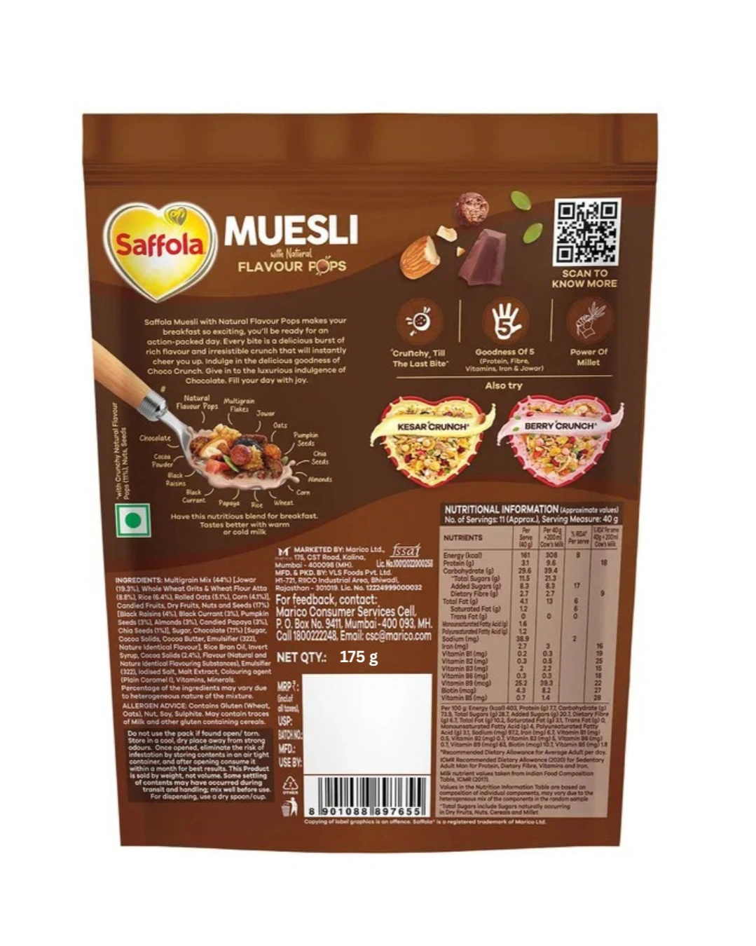 Indulge your chocolate cravings without compromising on health with Saffola Muesli Choco Crunch, now available at Nirogya Nepal. This 175g trial-sized pack is the perfect introduction to a nutritious breakfast that tastes like a treat. Combining the goodness of multigrains with premium cocoa and crunchy chocolate pops, it offers a delightful crunch in every bite, making it a favorite for both children and adults who want a fun start to their day.
