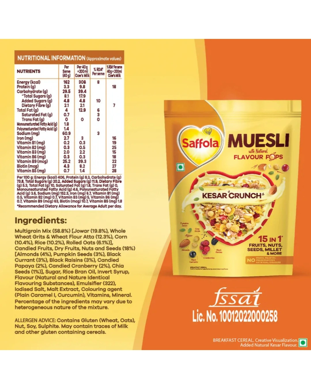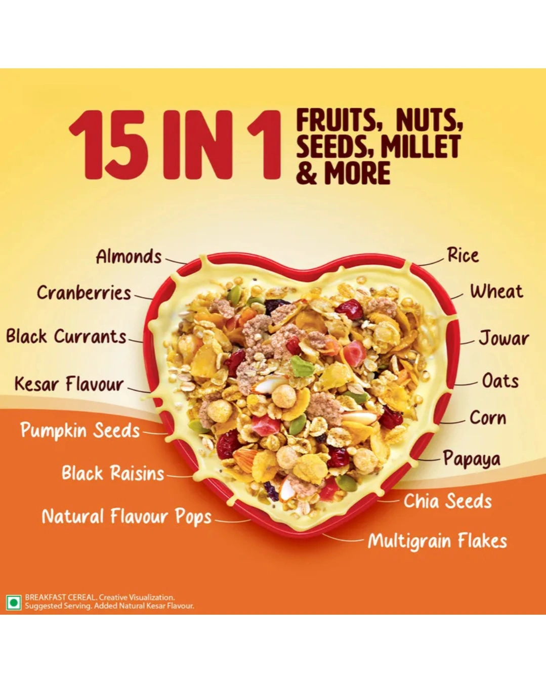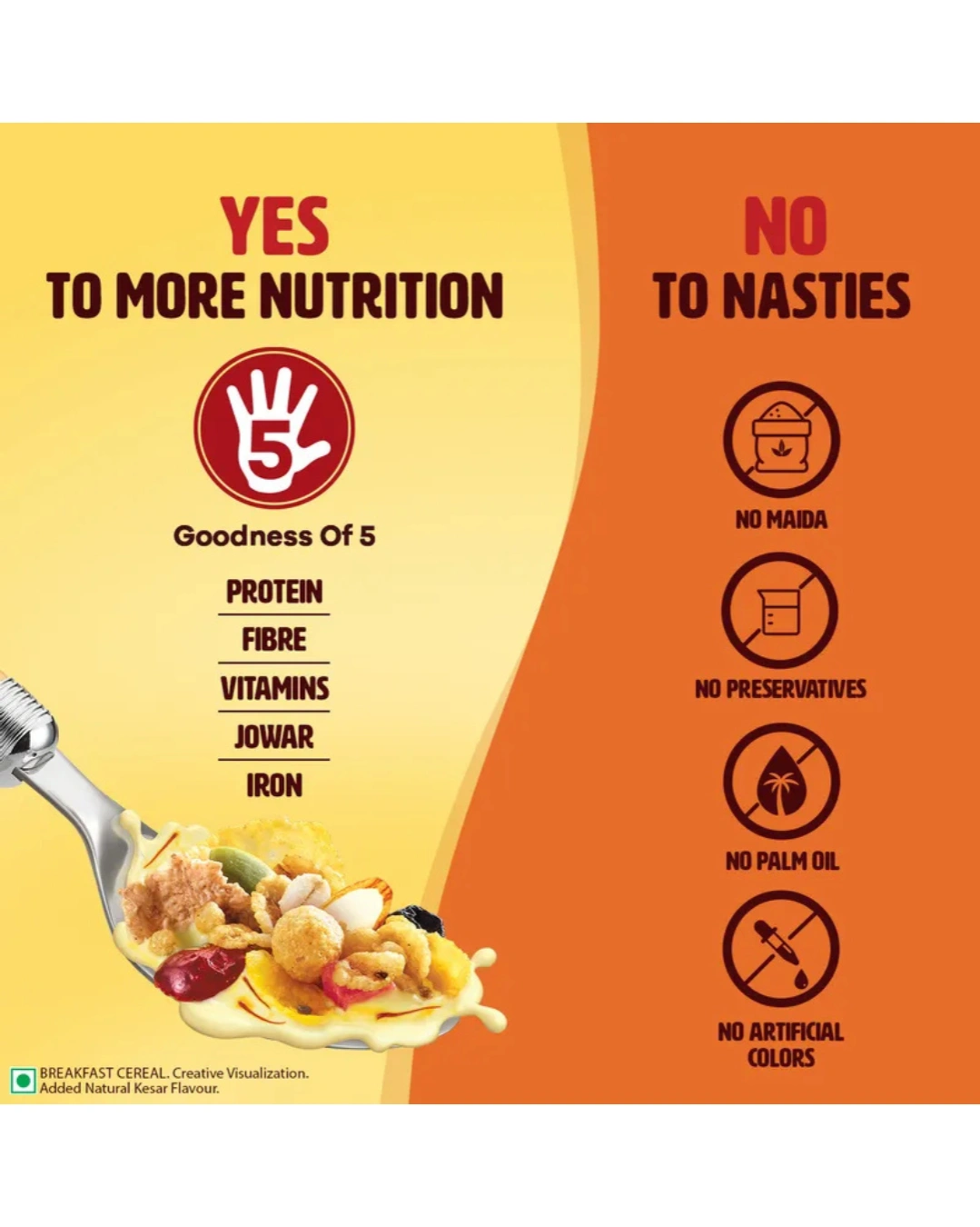 Royal Kesar Aroma: Infused with natural saffron flavor, giving your breakfast a unique, rich, and traditional Indian aroma that stands out from regular cereals.